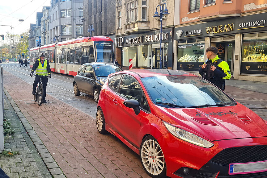 "Ich finde diese Kombiaktionen mit der Mountainbikestaffel und dem ADFC Duisburg als externem Kooperationspartner gut", sagt Markus Merten von der Verkehrsunfallprävention. "Das Phänomen des zu dichten Überholens gibt es im gesamten Stadtgebiet, und wird oft auch durch die Autofahrer falsch eingeschätzt."