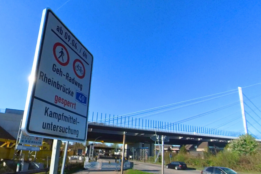 Von Mittwoch, dem 9. April, 6 Uhr, bis "voraussichtlich" Freitag, dem 11. April, bleibt der Radweg auf der Rheinbrücke Neuenkamp gesperrt. Die verantwortliche Projektmanagementgesellschaft DEGES kündigte dies zwar still und leise auf ihrer Website an, aber eine breitere Information der Öffentlichkeit sucht man vergeblich.
