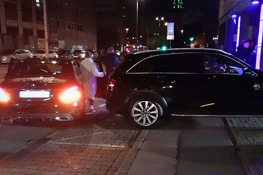 Am Abend des 5. Dezembers 2025 gegen 22:45 Uhr fuhr eine Radfahrerin auf der Steinschen Gasse in Duisburg auf dem dort vorgesehenen Radweg. Auf Höhe der Hausnummer 48 wurde der Radweg jedoch durch ein Fahrzeug blockiert: Ein SUV stand auf ganzer Breite auf dem Geh- und Radweg, wodurch der fließende Radverkehr klar ersichtlich vollständig behindert wurde. Ein weiteres Auto befand sich auf der Fahrbahn und ragte teilweise in eine Einfahrt hinein. Der fließende Autoverkehr auf der Fahrbahn hingegen wurde zu keiner Zeit beeinträchtigt.