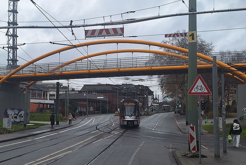 Es ist zwar nicht die Tübinger Radbrücke... doch zeigt auch die Hochfelder Brücke Potenzial für den Radverkehr: Wege für Radfahrende abseits des Autoverkehrs zu schaffen.