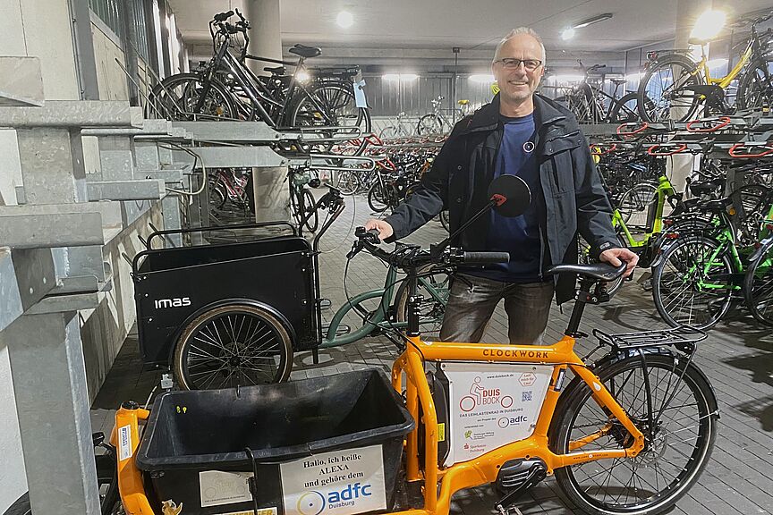 Unter dem Namen „DuisBock“ betreibt der ADFC Duisburg seit 2018 seinen kostenlosen Lastenrad- und Anhängerverleih. Nun hat Tobias Sander (selbst erfahrener Radkurier und Schokofahrer) vom neuen Betreiber der Duisburger Radstation am Ostausgang des Hauptbahnhofes uns einen lang gehegten Wunsch erfüllen können: