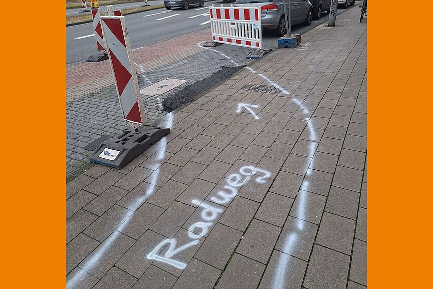 Darüber hinaus wurde die gedachte Verkehrsführung unkonventionell aber wirksam per Spraydose verdeutlicht.