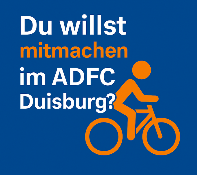 Der ADFC Duisburg ist ein aktiver Zusammenschluss engagierter Radfahrer*innen, die ein gemeinsames Ziel verbindet: Duisburg lebenswerter, sicherer und deutlich fahrrad- wie fußgängerfreundlicher zu machen. Wir setzen uns für eine zukunftsfähige, klimafreundliche Mobilität ein – und sind gleichzeitig die erste Adresse für alle Fragen rund ums Fahrrad.